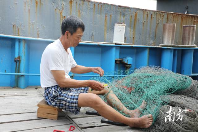 73岁的姚来水是粤潮南渔11168的船东,他跨坐在岸边的护栏上,吹着咸咸的海风。脚下,泊着他赖以为生的渔船。他自小在海边长大,长年跟大海打交道,风里来雨里去,至今已经60个年头。他告诉记者,4月下旬,渔政部门就通知船老板提前做好伏休准备,在这期间他做得最多的就是渔船的各项保养工作。